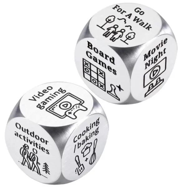 This playful and inventive dice game is designed to strengthen your bond while tackling those “What should we do?” moments with a splash of spontaneity. Whether you’re planning date nights, debating dinner choices, or looking for new ways to connect, these dice are your ultimate tool for turning indecision into excitement. Together, you’ll roll the dice, embrace the unexpected, and discover creative solutions that reflect both of your personalities. Get ready to laugh, compromise, and spark joy in decision-making, one roll at a time!